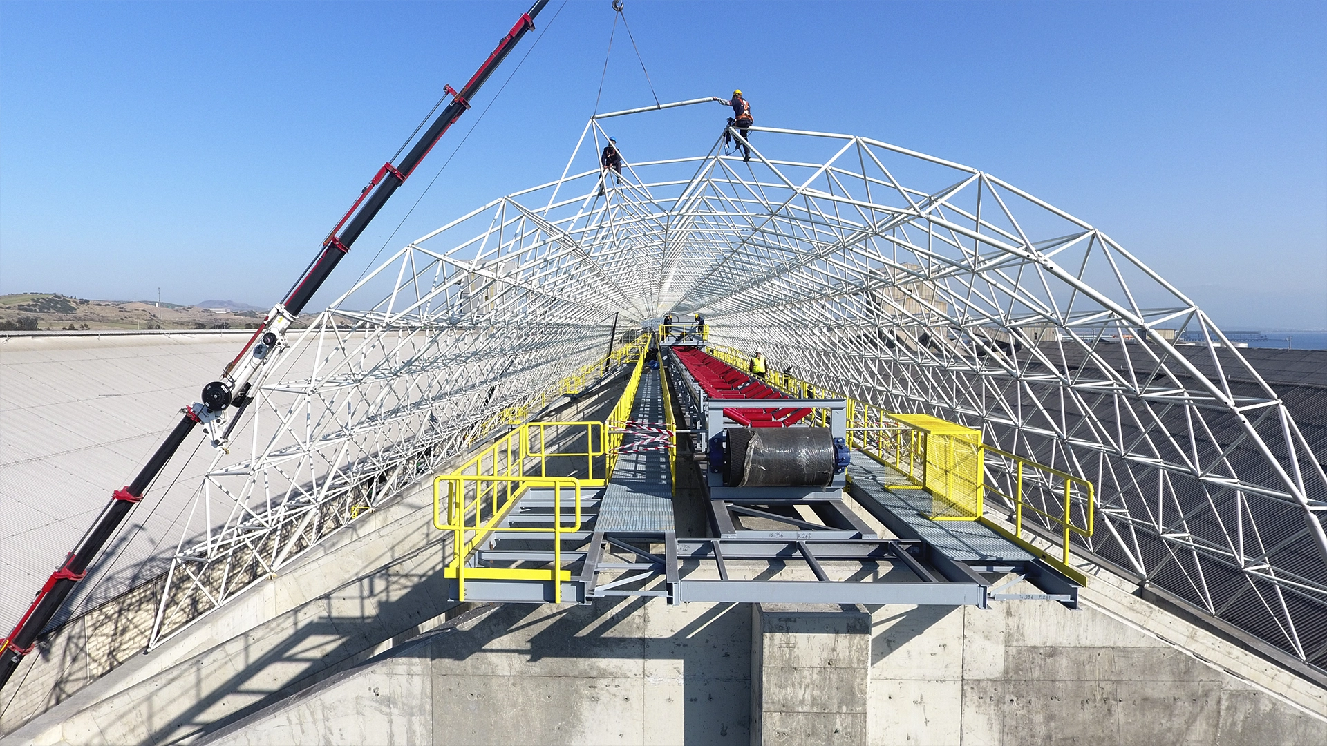 At the installation phase, the space frame does not require any welding operations on site under any circumstances, since it is assembled on site with its shoring elements, where installation time reduces the total installation period.