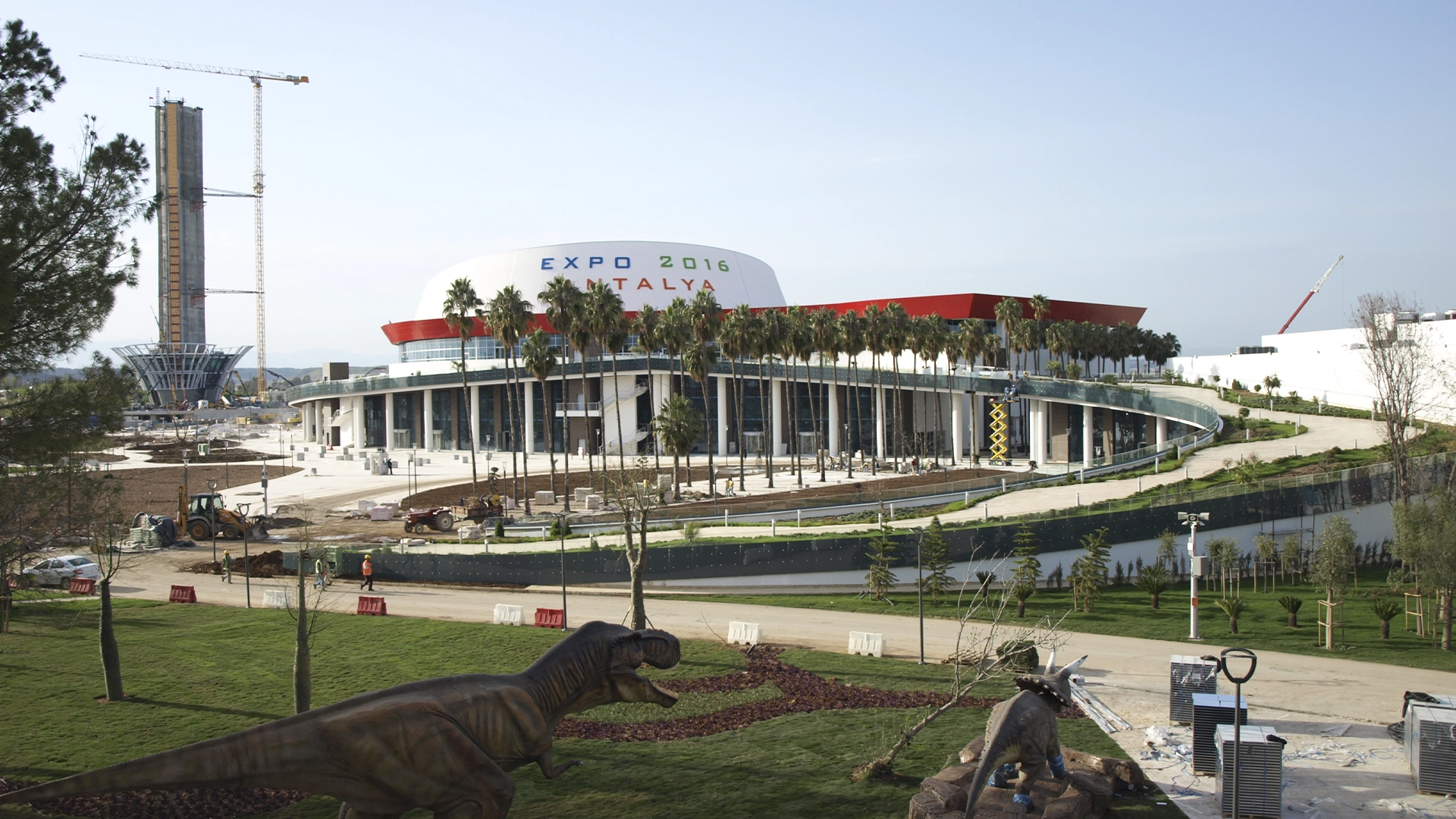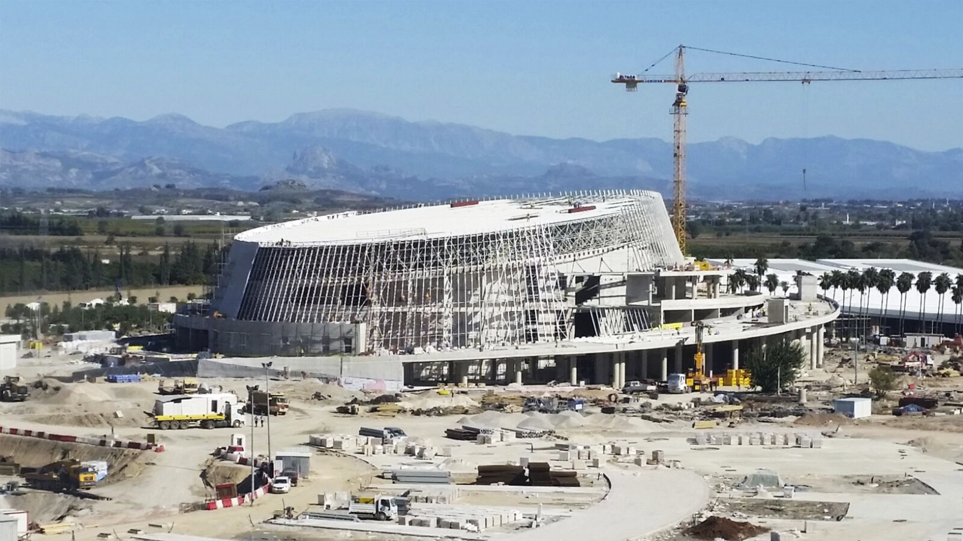 A congress center with a elliptical shaped roof, geometry of a truncated conical form and 70-meter span and 90-meter length has been realized by POLARKON.