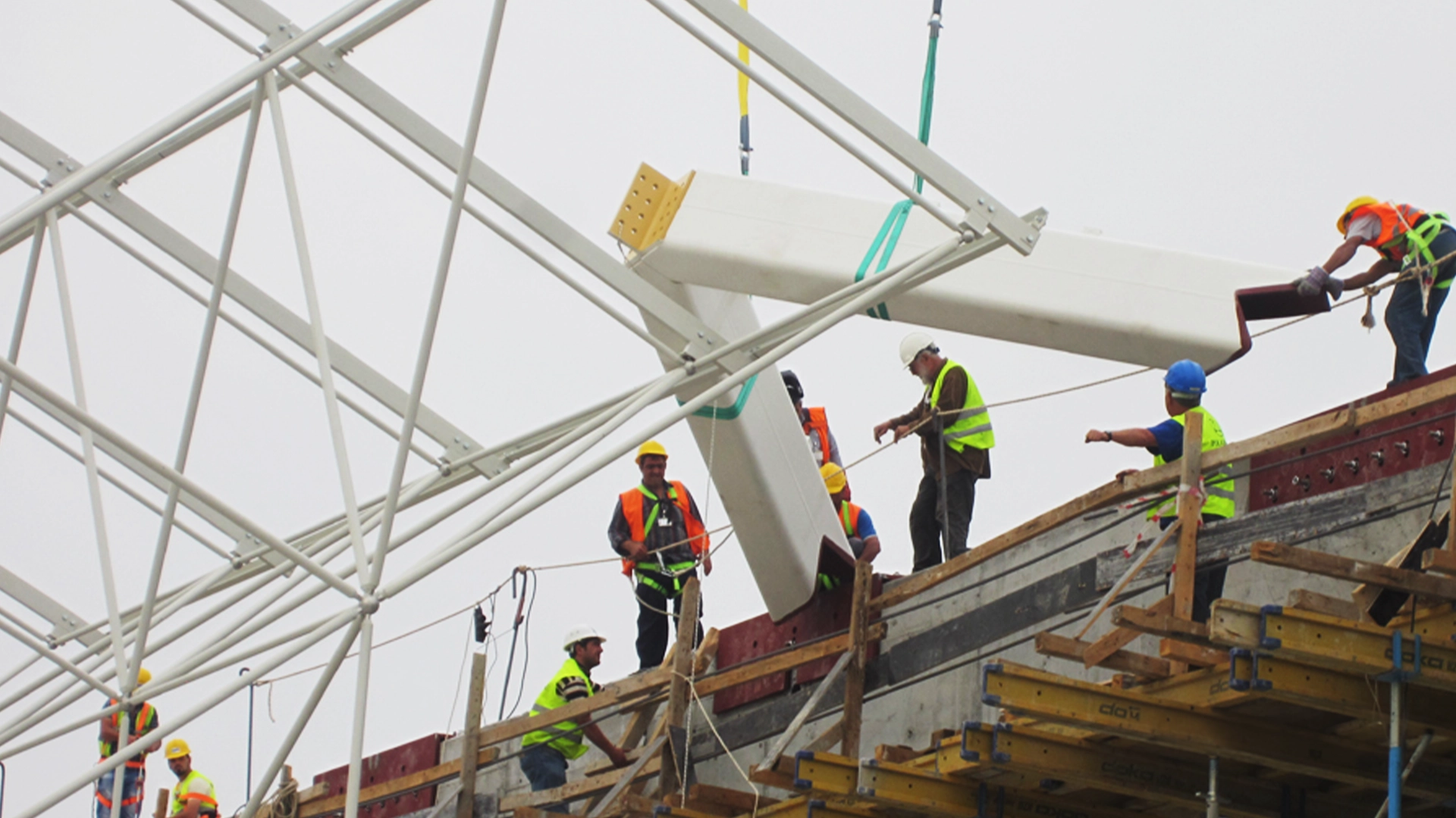 Unique in its architectural design and its engineering solutions, POLARKON has designed and manufactured special box sections with hidden bolt fasting systems. The structural behavior of the vaults has been supported with a special tensioning system consisting of 7 tension road 85-mm in diameter, which makes the structure an arch form. Also, for this unique project, POLARKON has installed their structural health monitoring system, where the continous and real-time monitoring for load variations on tension rods could be followed.