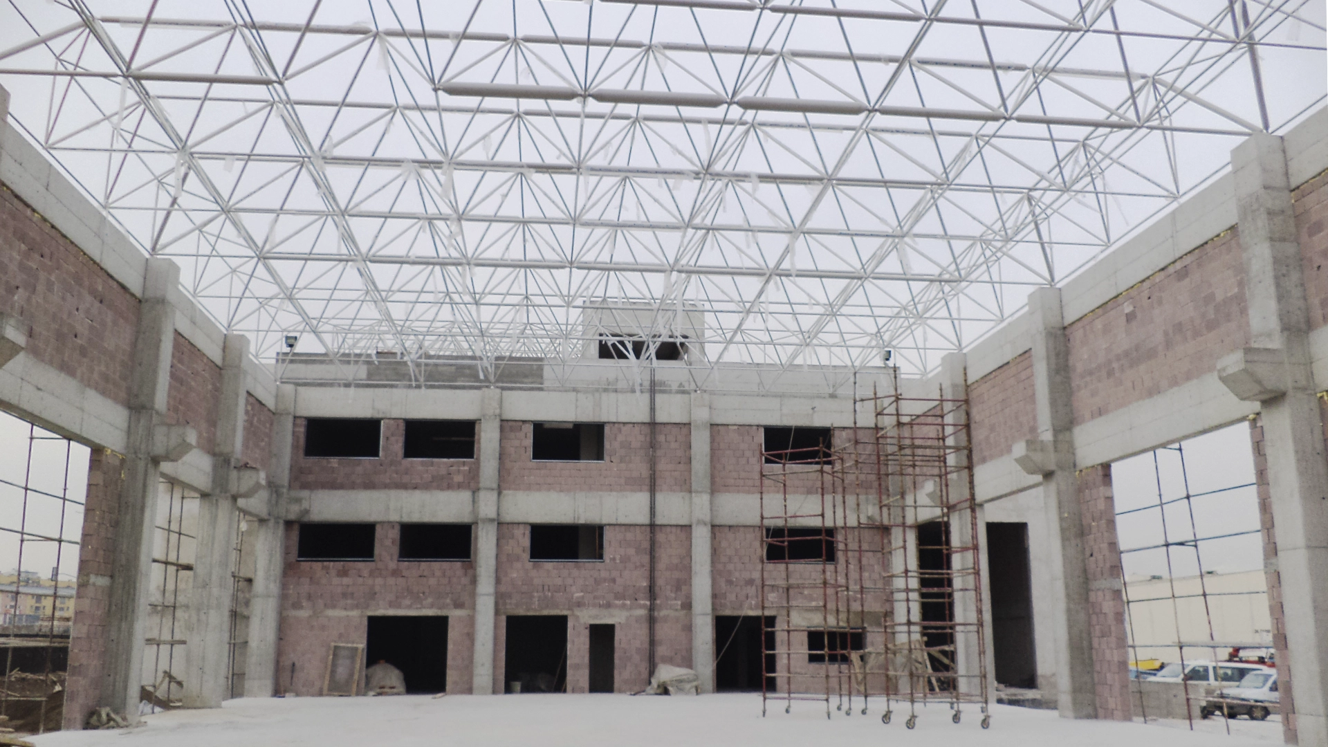 Polarkon carried out all the roof and facade constructions and cladding after the reinforced concrete work. The most important element highlighting the architectural design is the use of the space frame roof system as an element carrying the glass covering on the facade. This has created a spacious and bright space in the entrance hall.