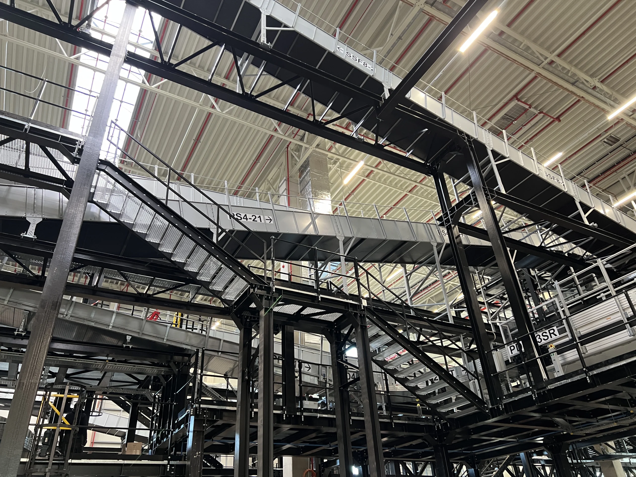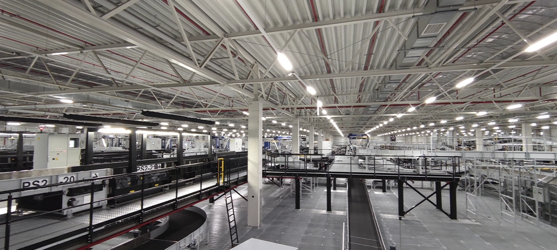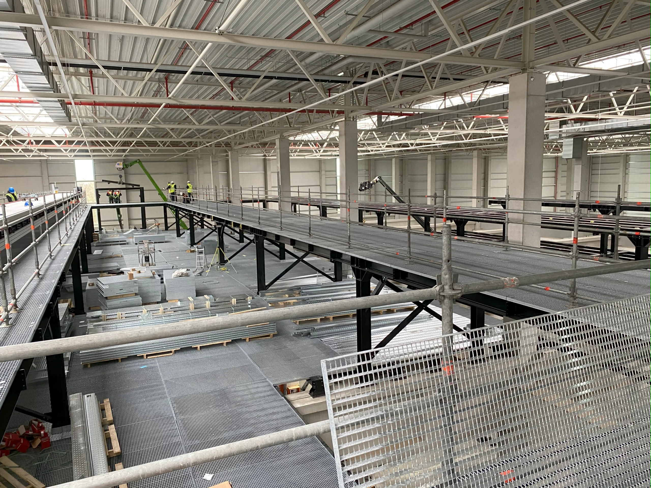 In this major logistics superplant, POLARKON has supplied and installed 3.300 tons of steel mezzanine structures of conveyor systems, 80 tons of steel stairs, 24.000 m² of steel gratings and 6.000 meters of steel handrails.