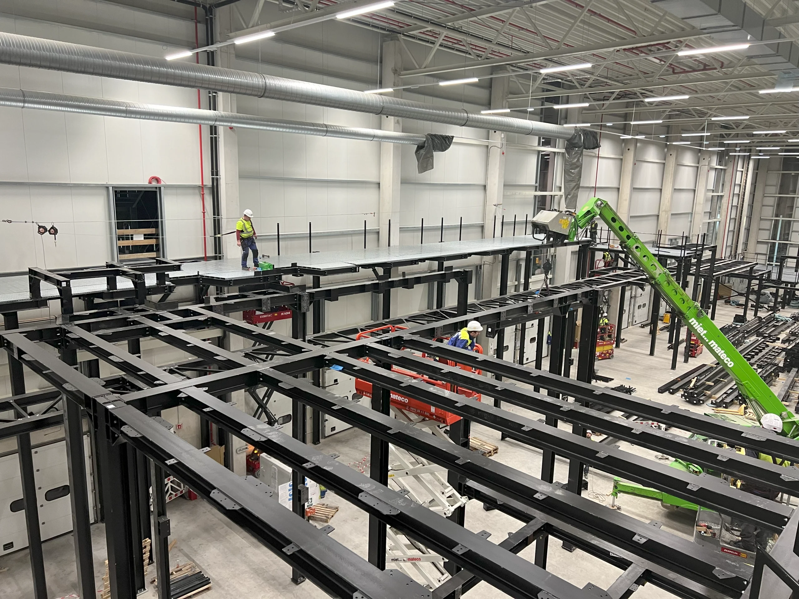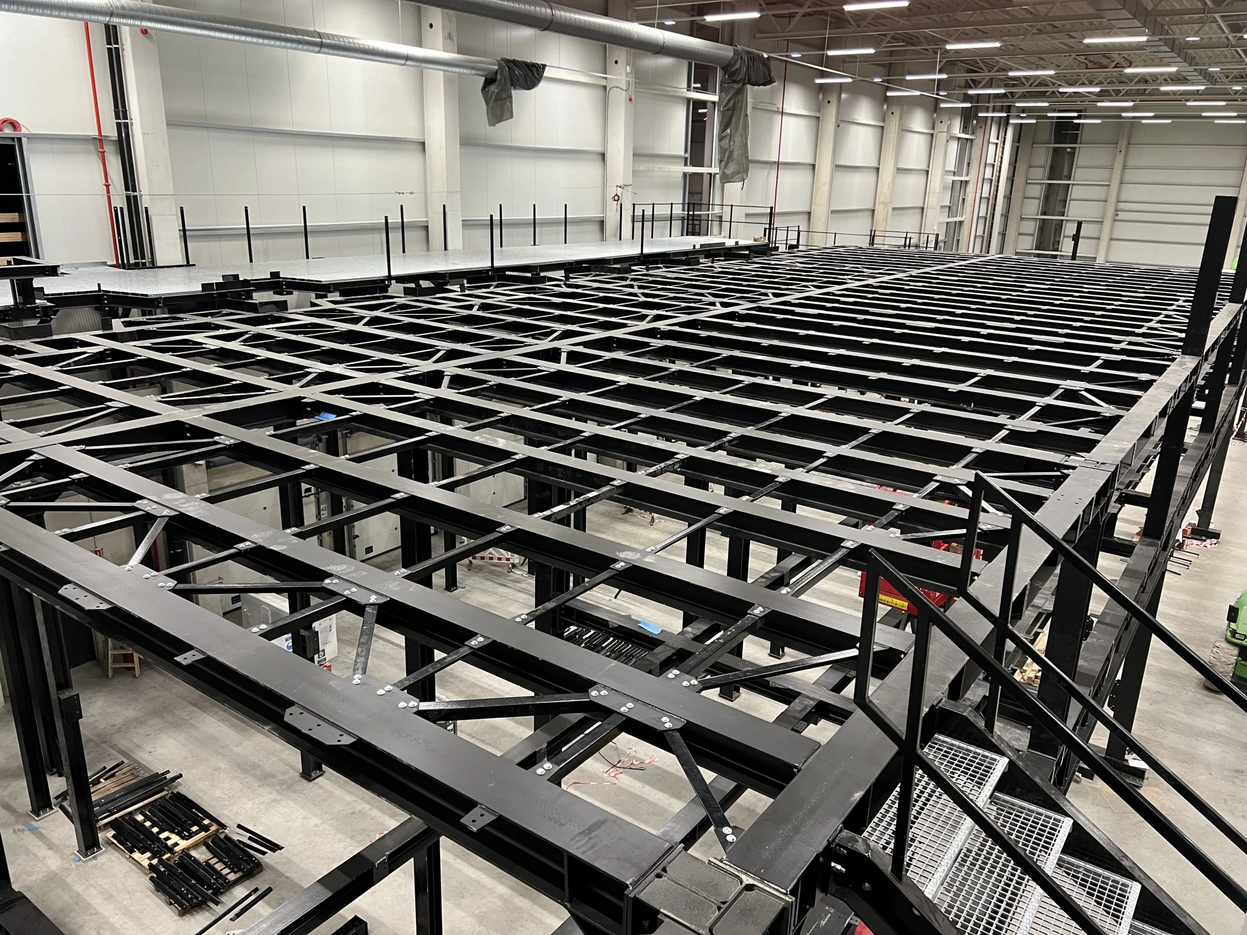 The construction of the Langenhagen Logistics Center in Hannover has started in 2020 and has been completed at the end of 2024. The design, engineering, supply and installation of the steel mezzanine systems including the substructure of conveyor systems, handrails, gratings, ladders, stairs and cages of the facility are all executed by POLARKON.