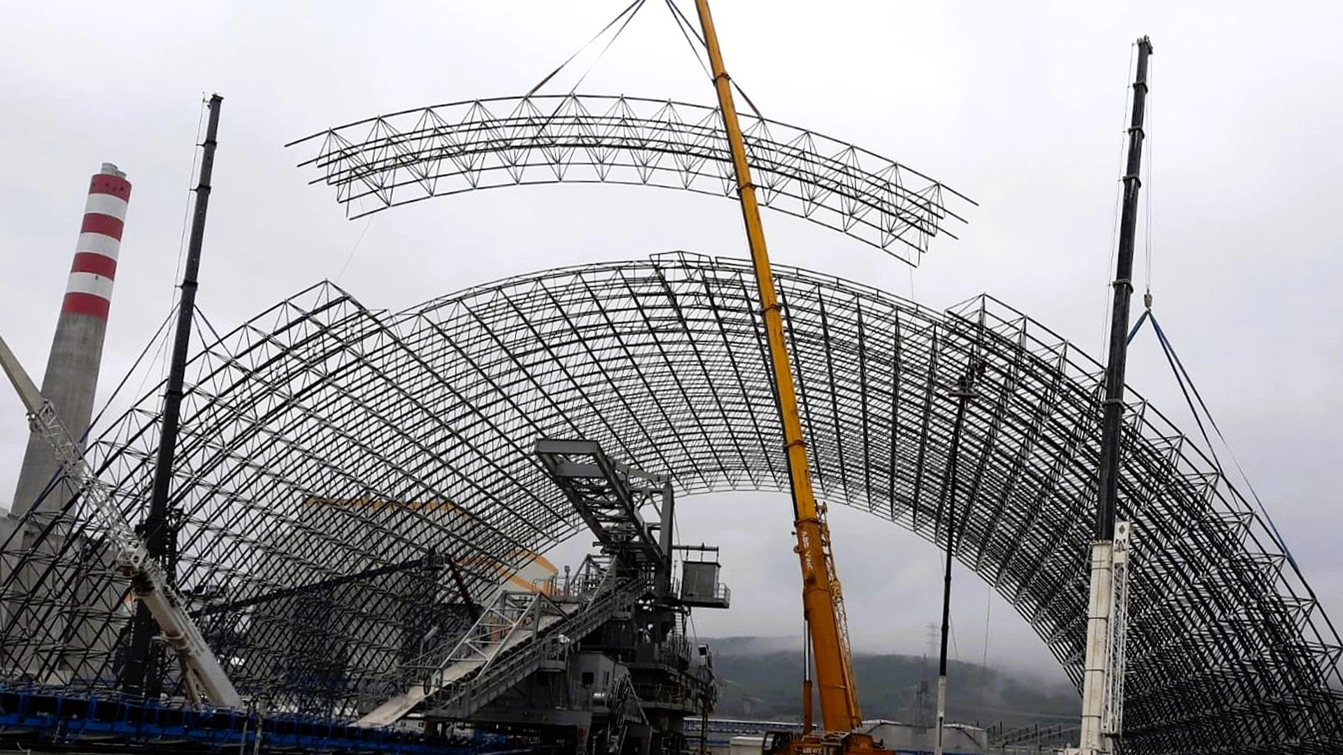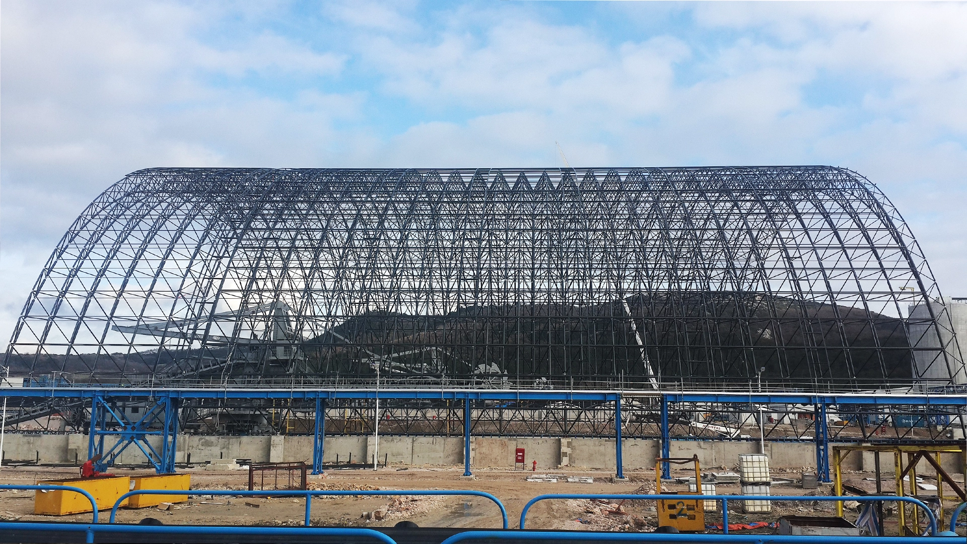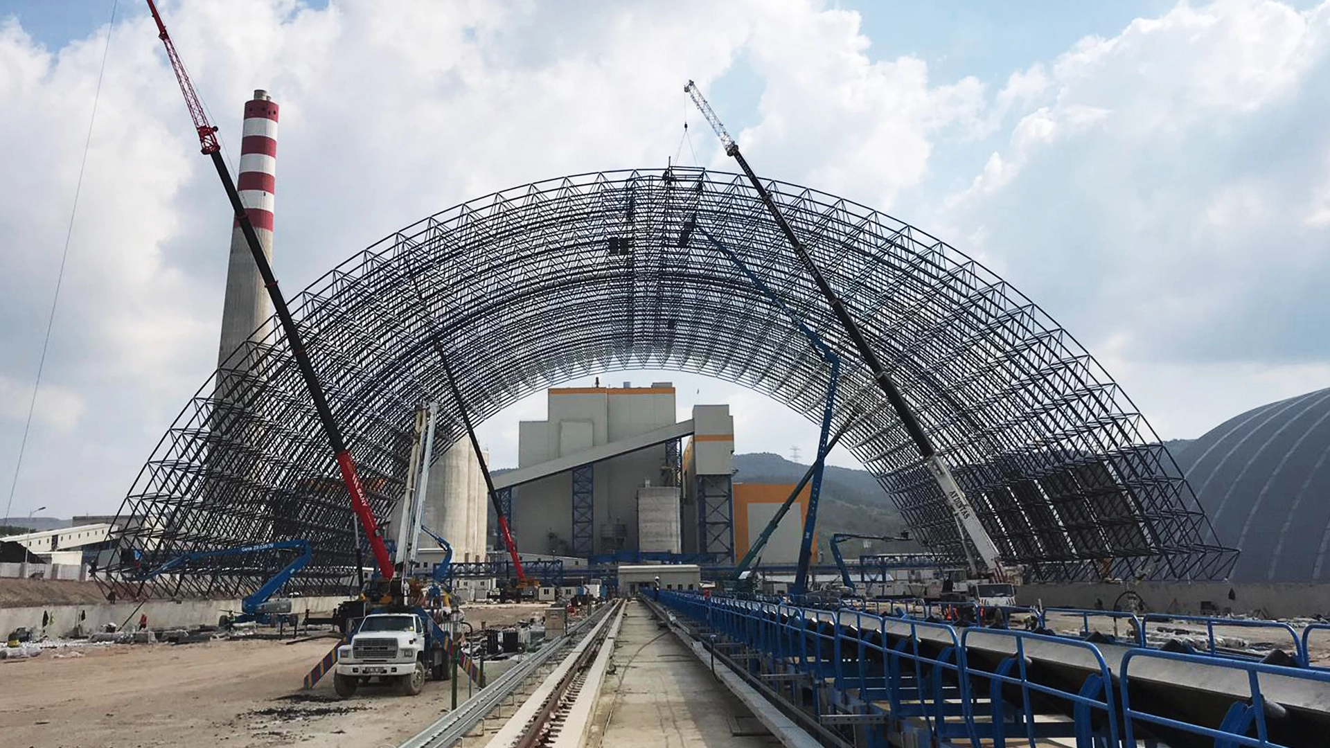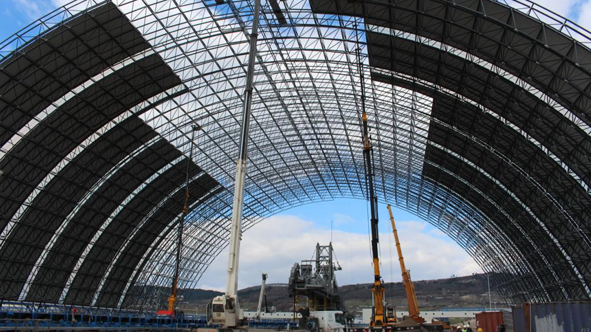 With the aim of being able to use coal that is utilized in Manisa, Türkiye, without being exposed to external weather conditions; existing coal bunker areas have been covered with space frame construction which covers a total area of 36.000 square meter, with a critical span of 100-meter. For the vaulted roof construction, POLARKON has achieved a 35 kilograms per square meter. With the space frame roof application, the existing stock areas have obtained a wide working area with a critical span of 100-meter, whereas the environmental pollution has been prevented by protecting the bunker coal from outdoor conditions. By this way, the total efficiency has been substantially increased.